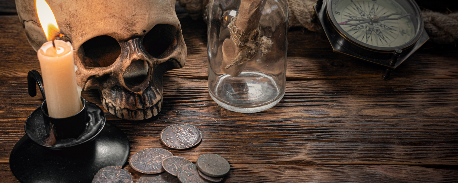Location Customizable Magnet - Nautical Backgrounds SKULL CANDLE AND COMPASS