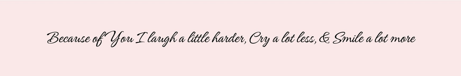 Shelf Sitter - Romance Theme BECAUSE OF YOU I LAUGH A LITTLE HARDER. CRY A LITTLE LESS. AND SMILE A LOT MORE